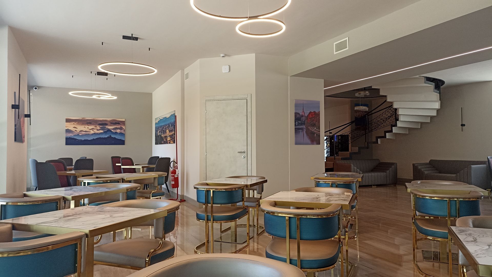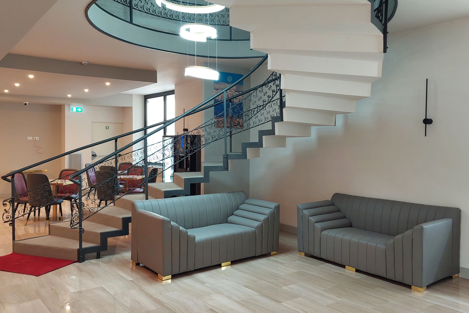 L’hotel dispone di un’ampia hall attrezzata con tavolini e divani.